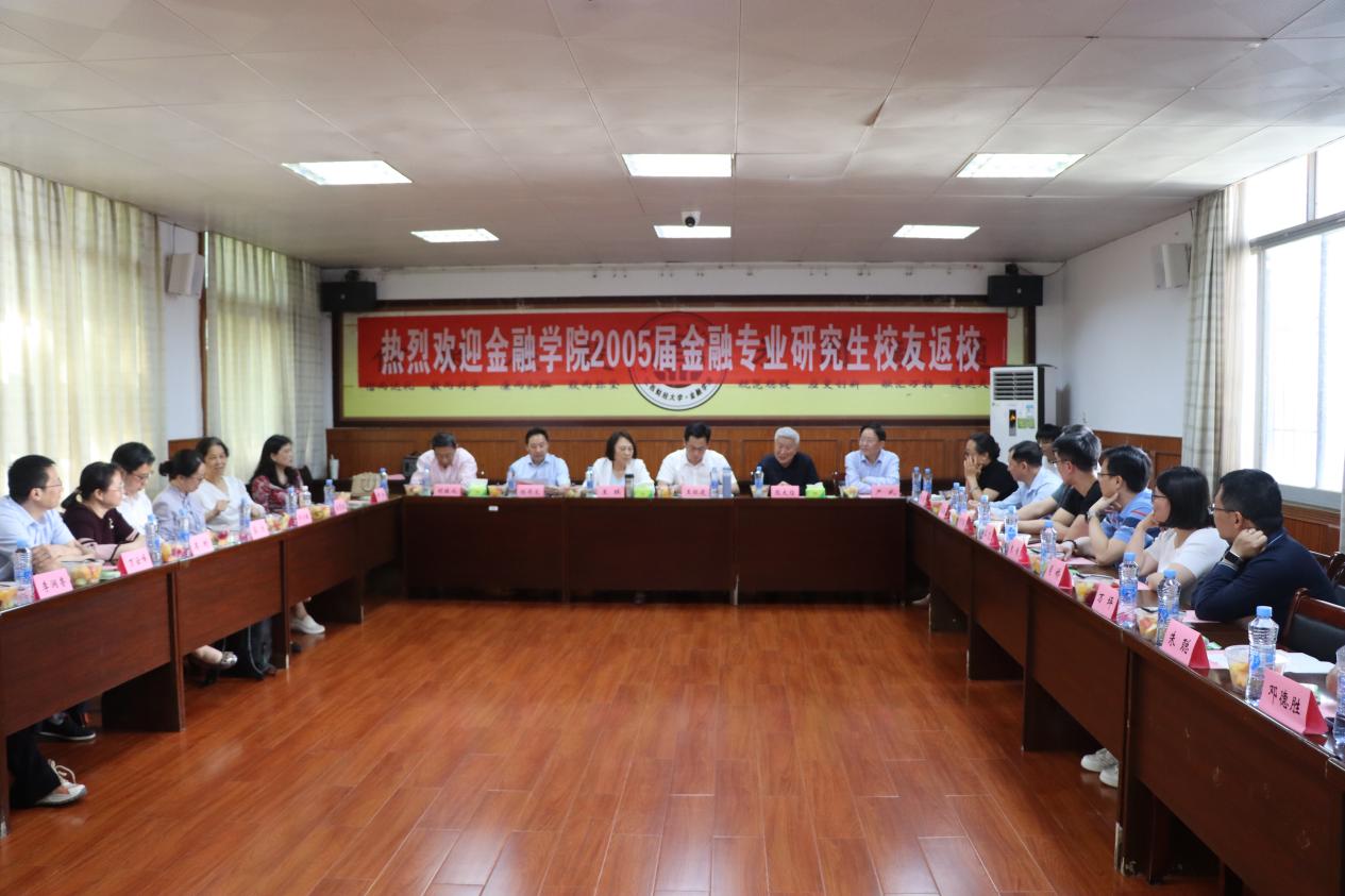 5月1日,澳门金沙 2005届金融专业20余名研究生重返母校,在翼轸楼举行毕业二十周年座谈会,感怀母校恩、共叙同窗情。2005届留校任教校友李国艳主持座谈会,澳门金沙 党委书记王琪、副院长(牵头行政工作)王红建,时任导师熊大信、胡援成、严武、桂荷发等老师出席座谈会。